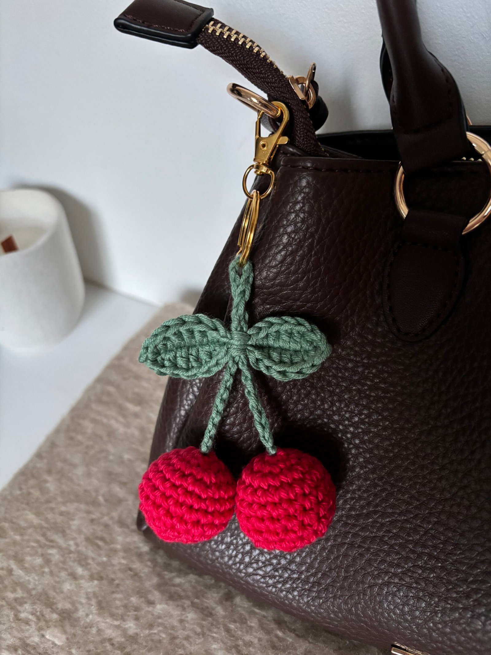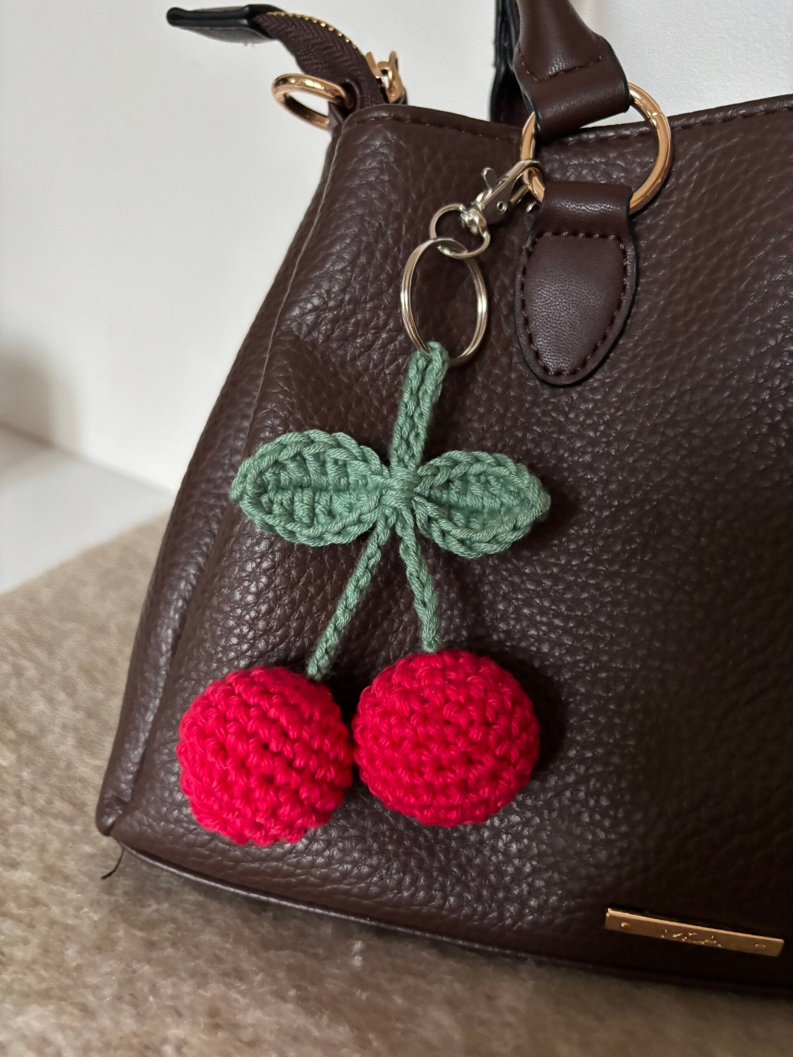 Bijoux de sac – Porte clés cerise en crochet – charms sac