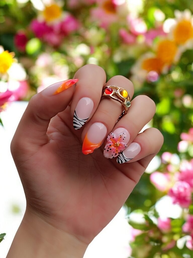 Un design délicat qui célèbre la simplicité florale. Les tons rosés doux apportent une élégance naturelle tandis que la fleur en relief devient le point central du set. Féminin et romantique sans être excessif, il s’adapte à toutes les occasions. Cette manucure incarne la douceur du printemps et la fraîcheur des premiers bouquets. Un incontournable pour une allure raffinée au quotidien.