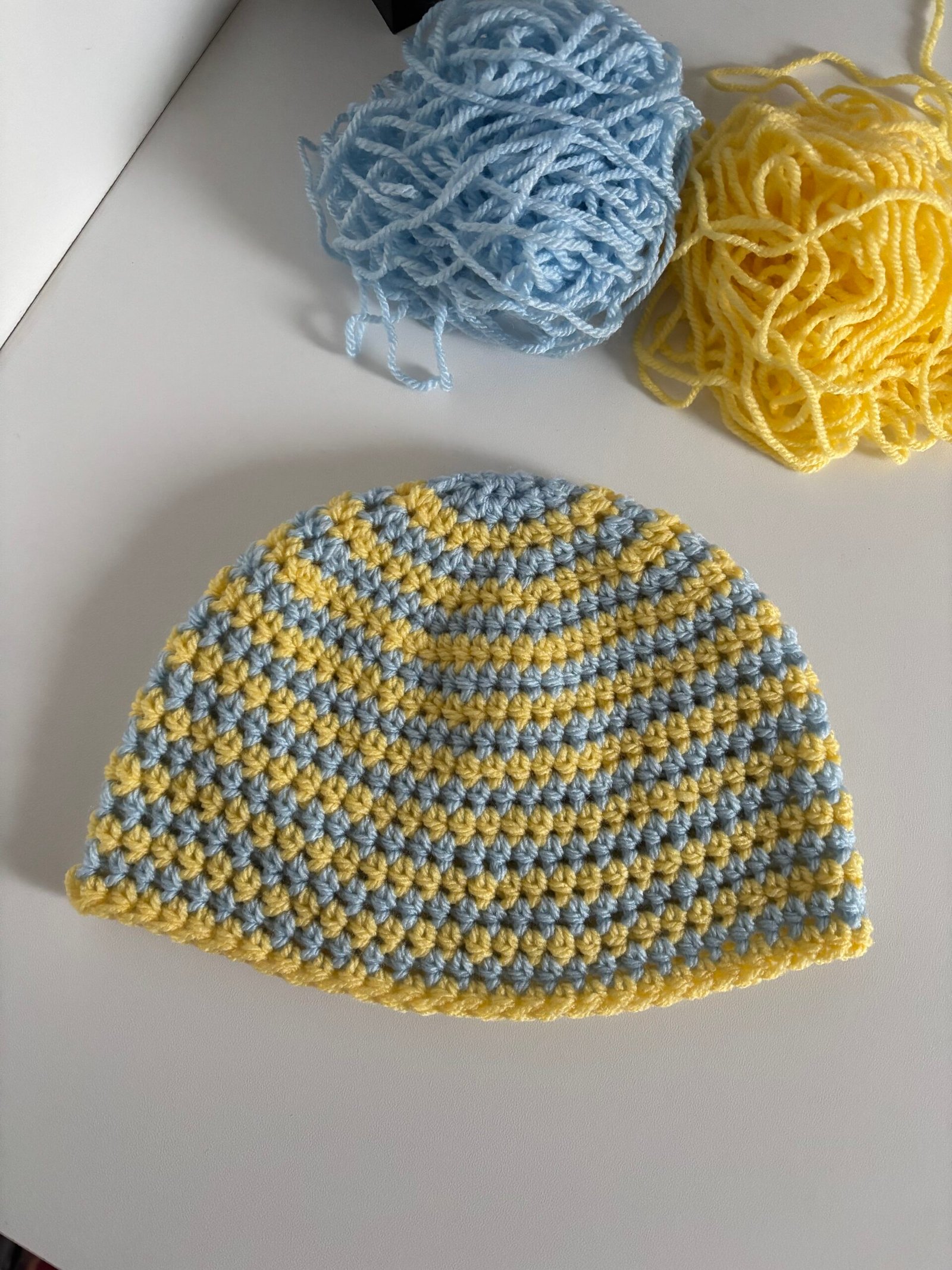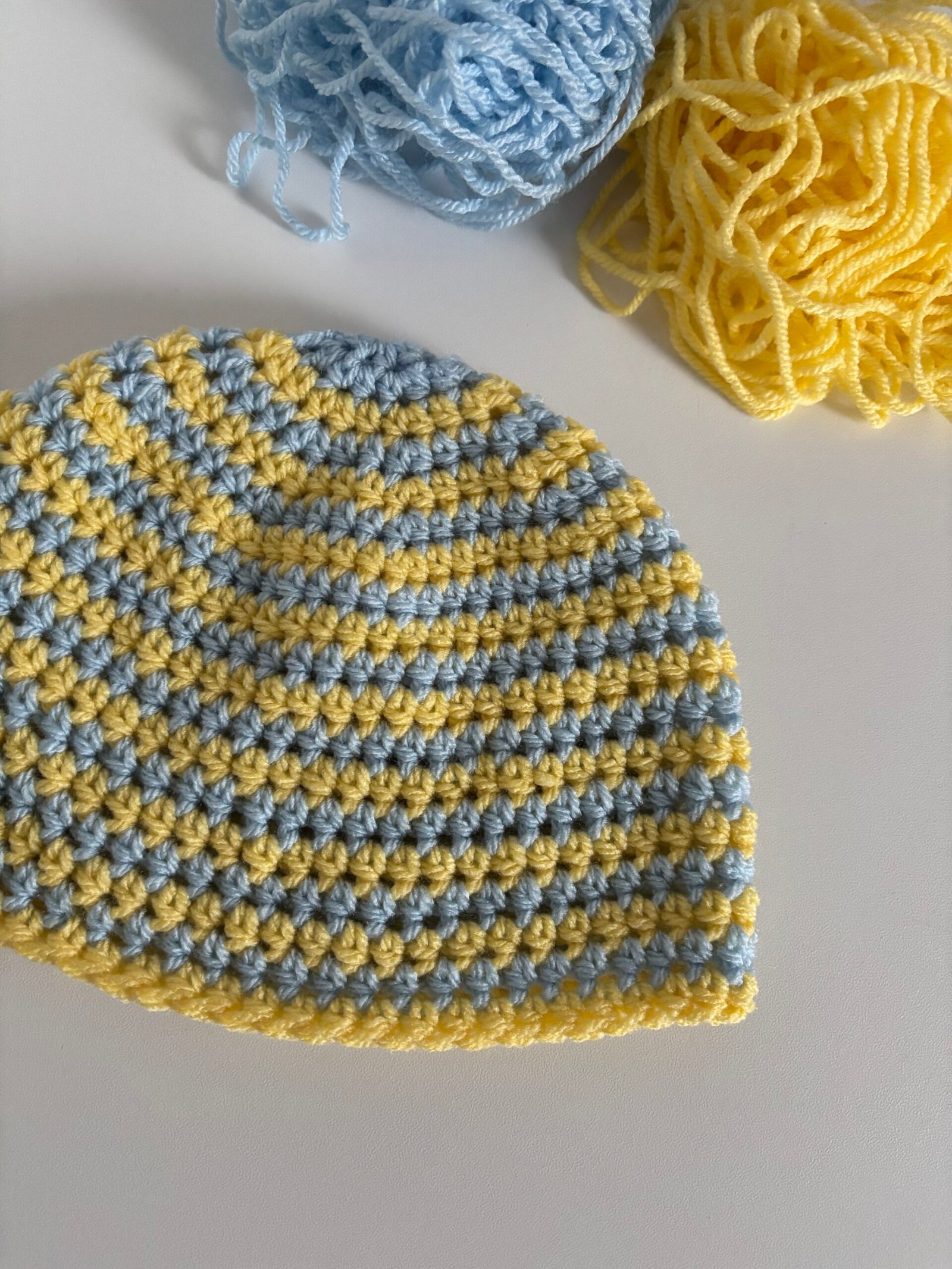 Bonnet au crochet bicolore, confectionné à la main en fil acrylique doux et confortable.✨
