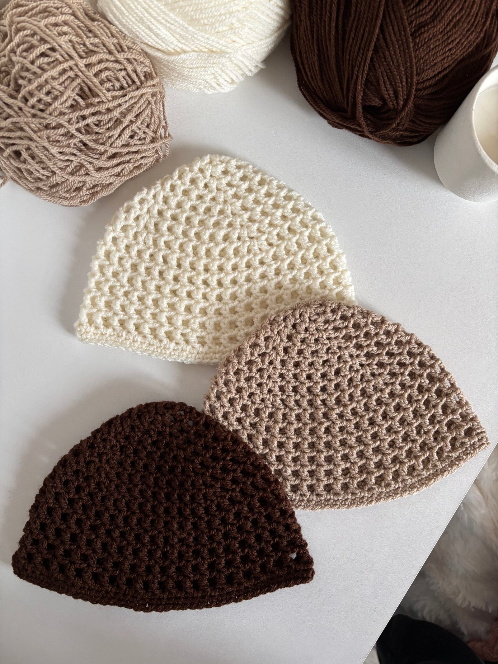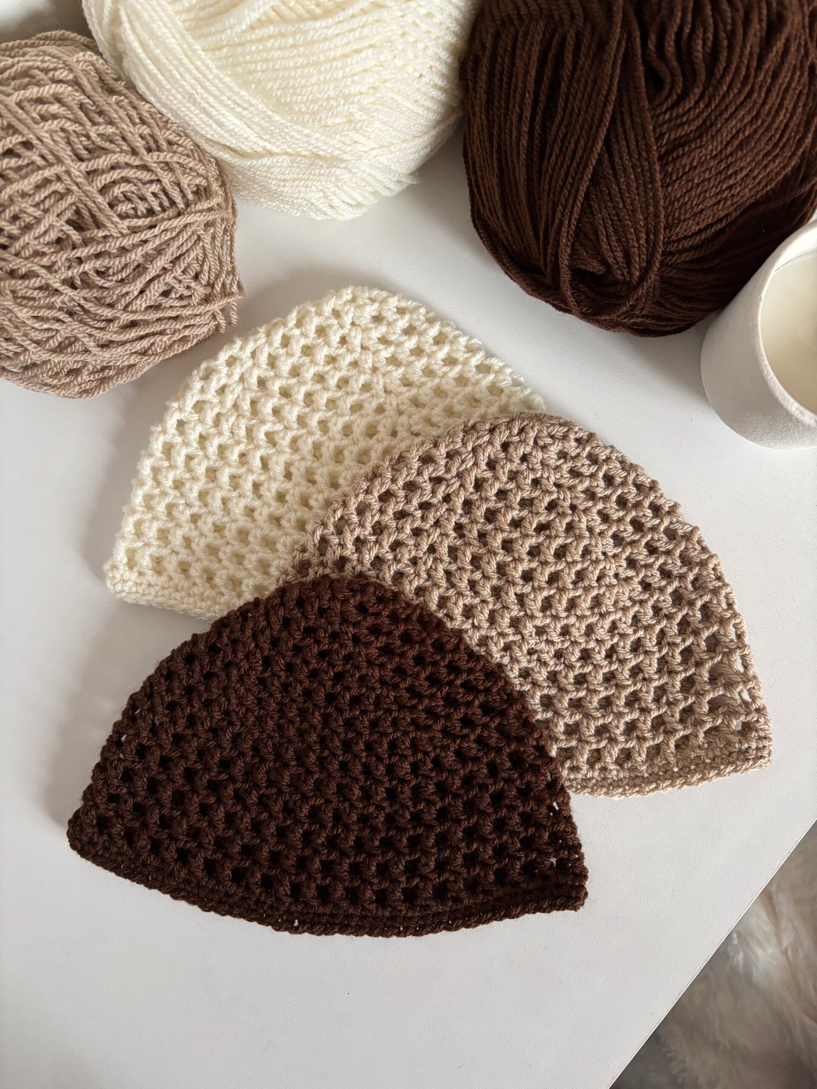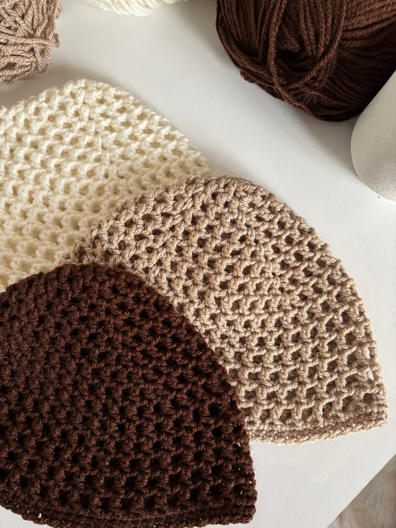 Ces bonnets en crochet confectionné à la main avec soin se distinguent par leurs points ajourés (point mesh)✨