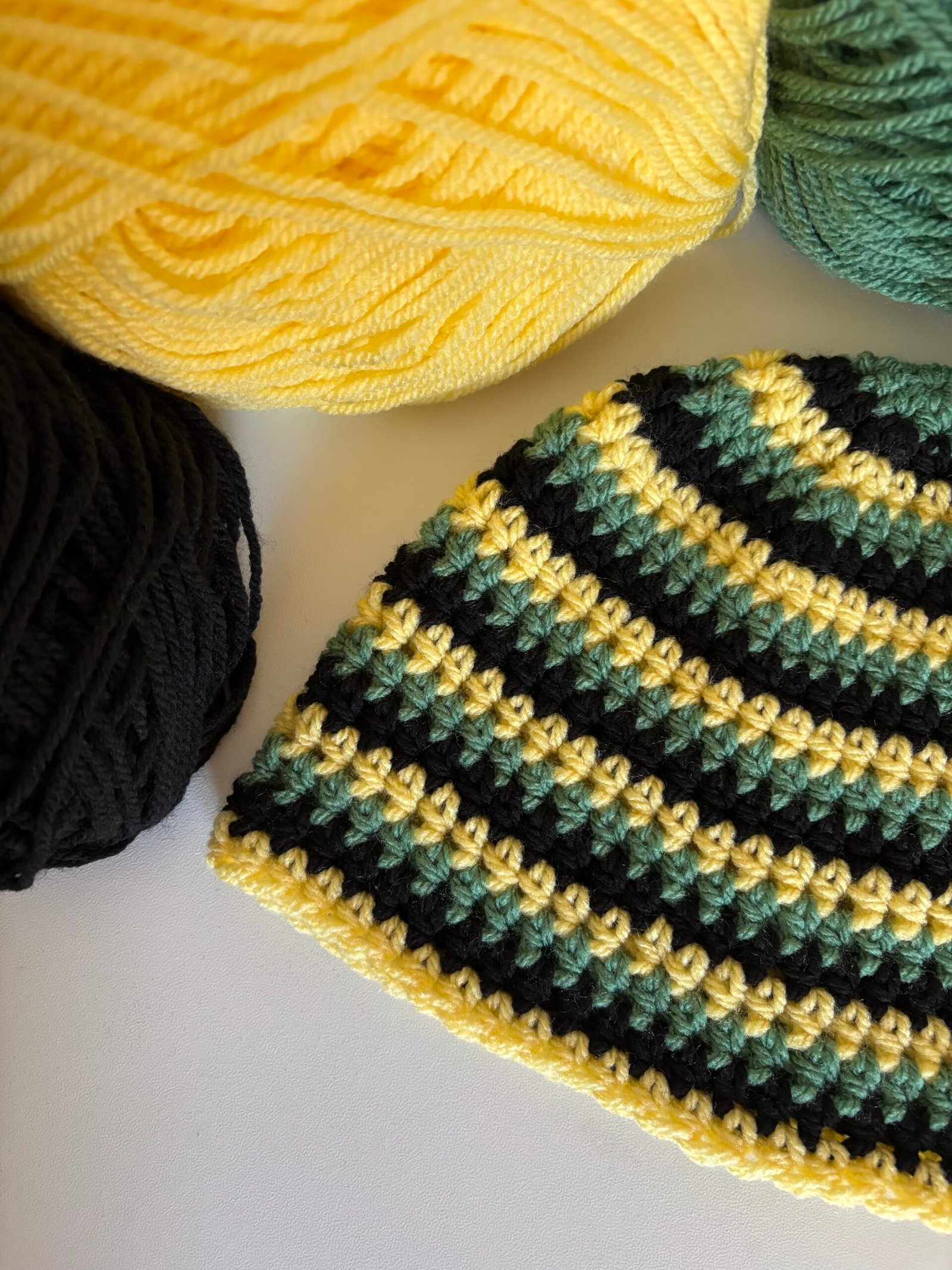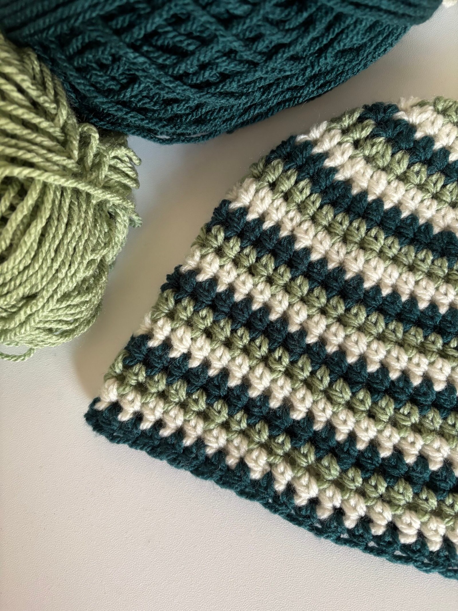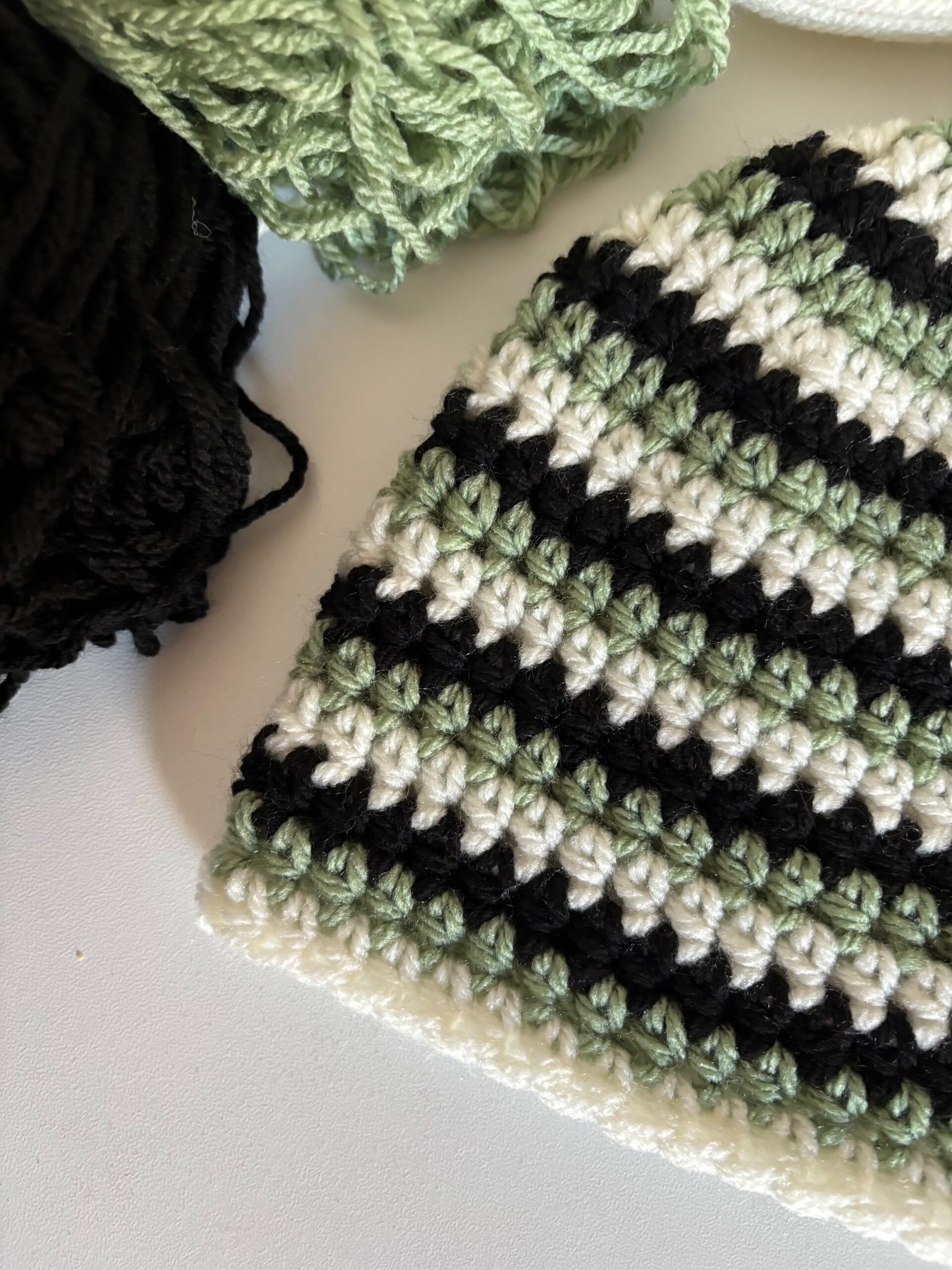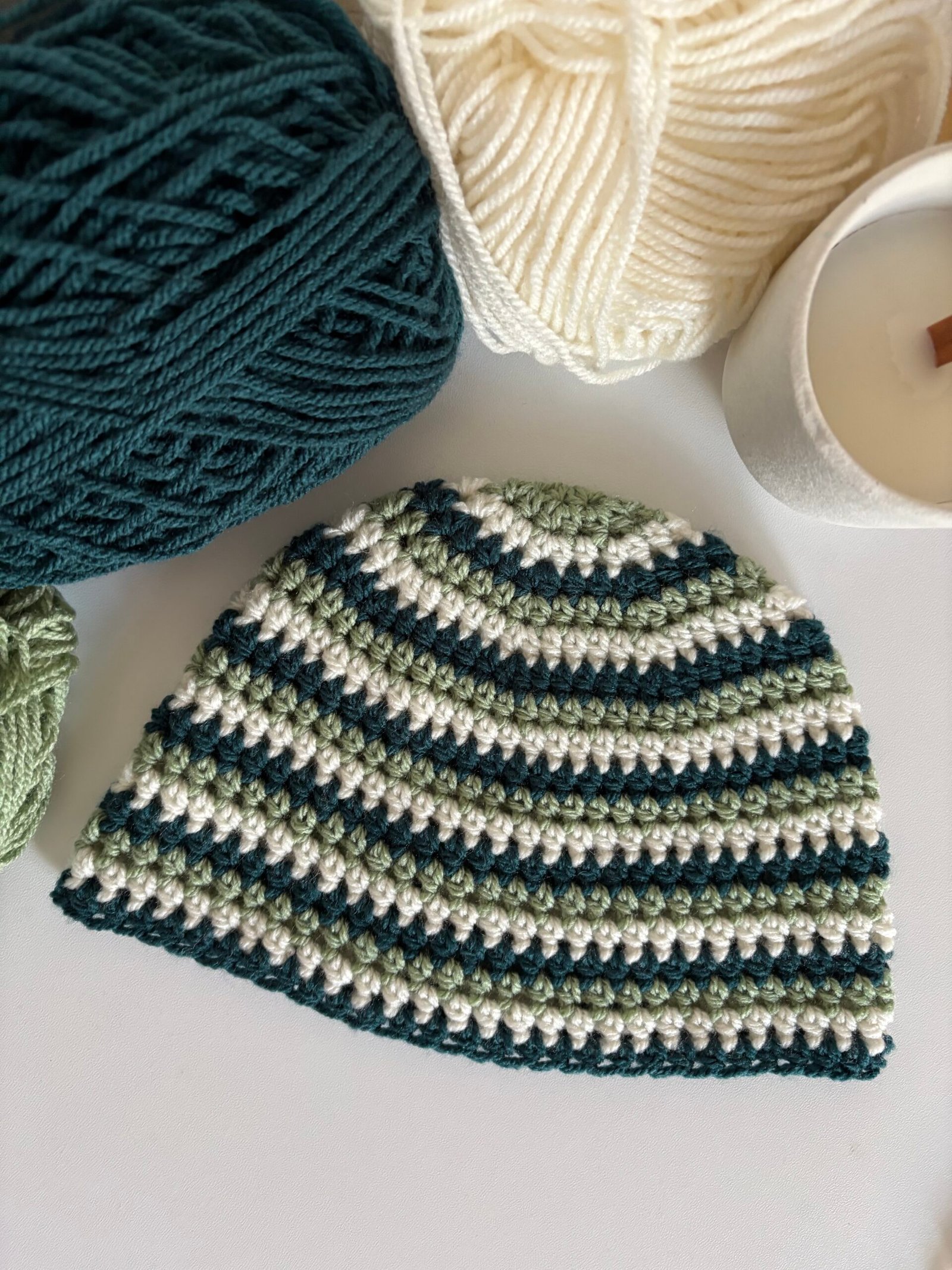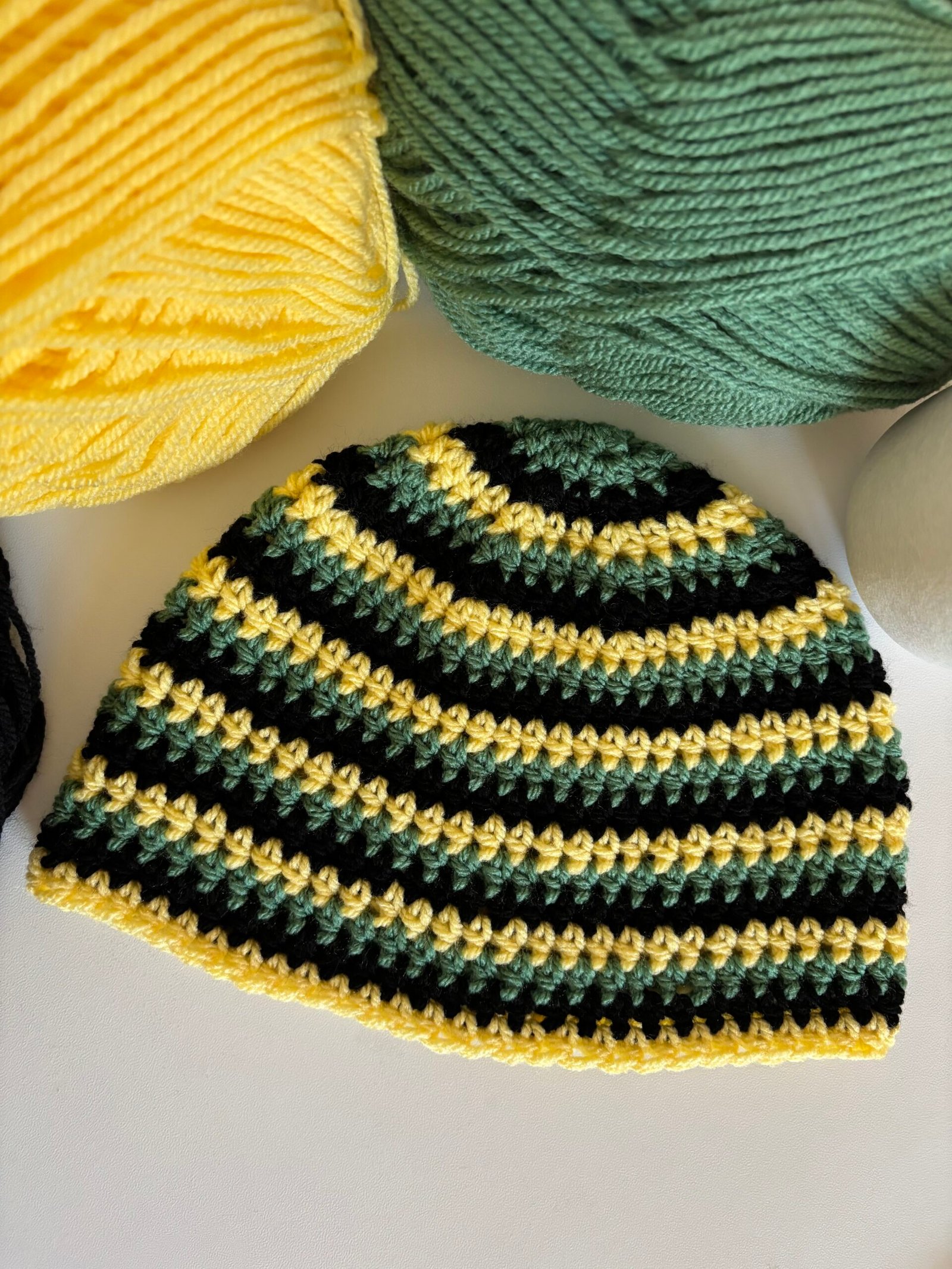 Bonnets rayés en crochet tricolore entièrement fait main avec soin.