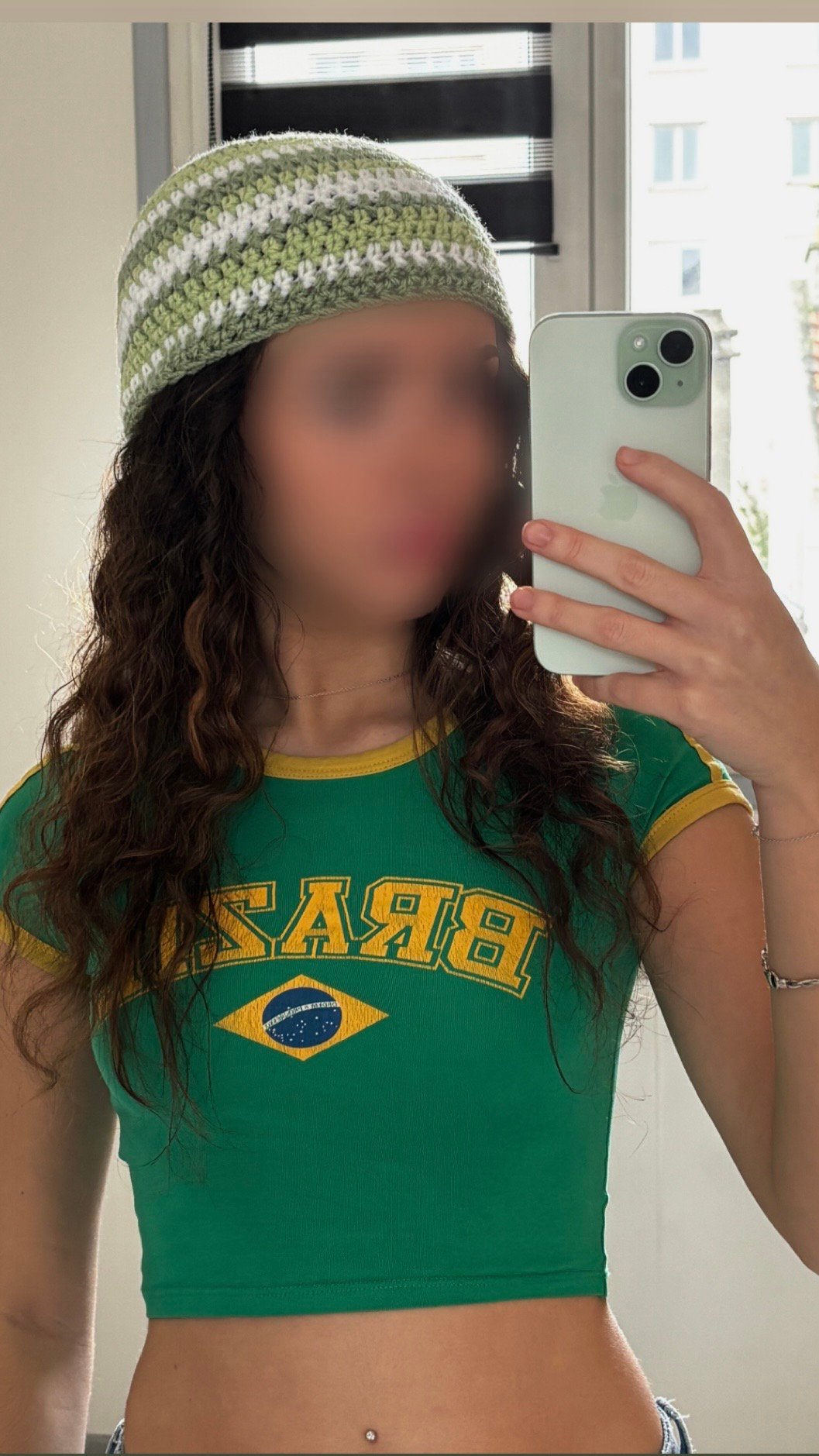 Son style cozy et ses couleurs naturelles (vert sauge, vert pomme et blanc) en font un accessoire facile à porter au quotidien.