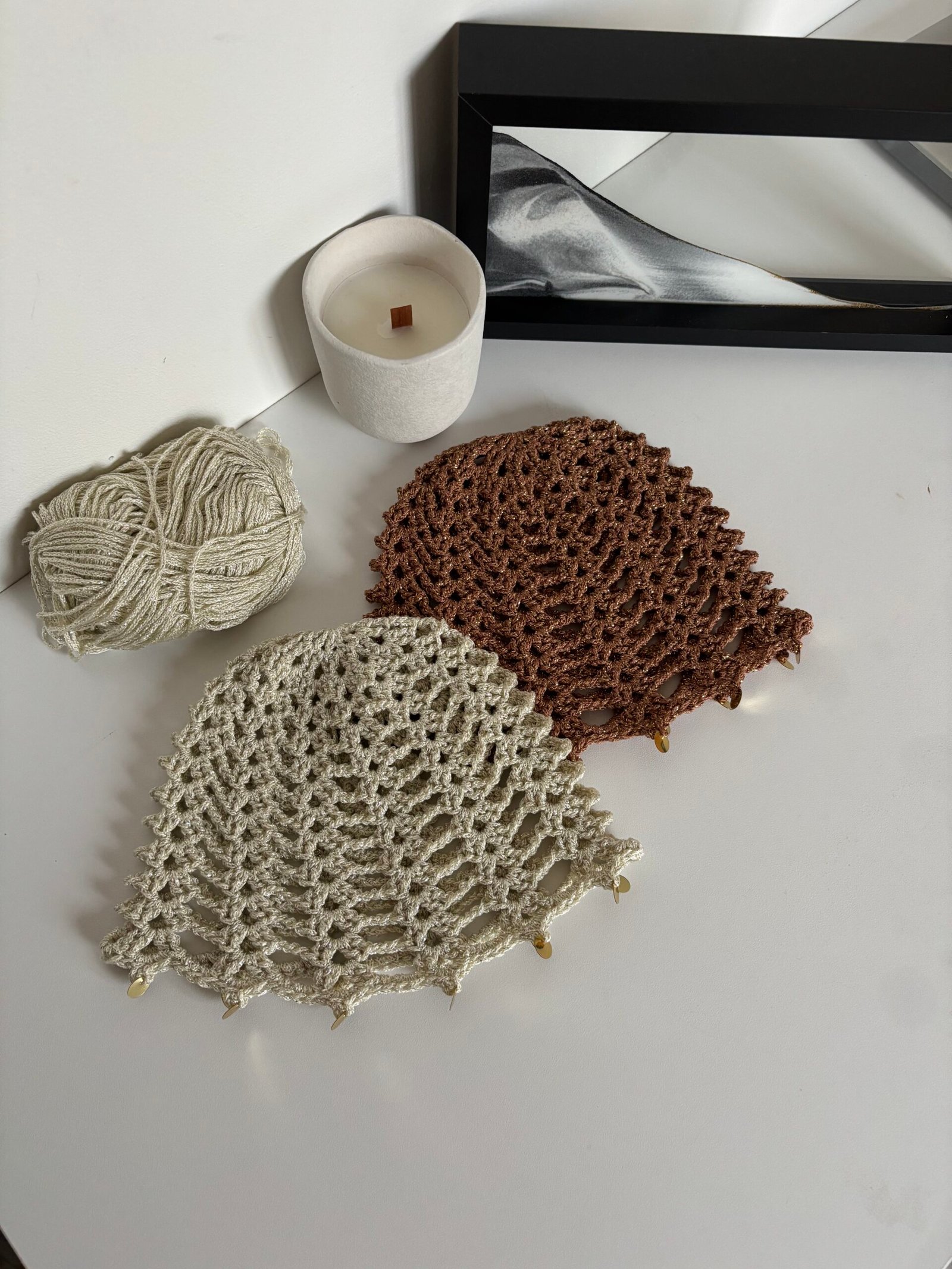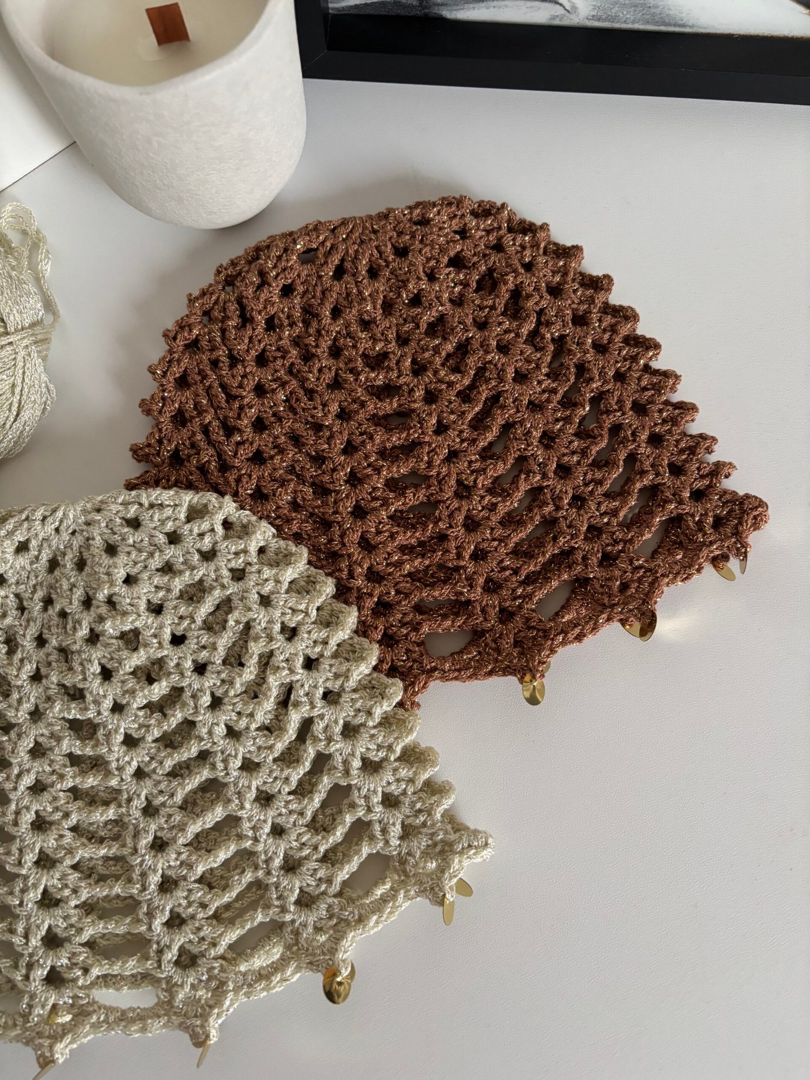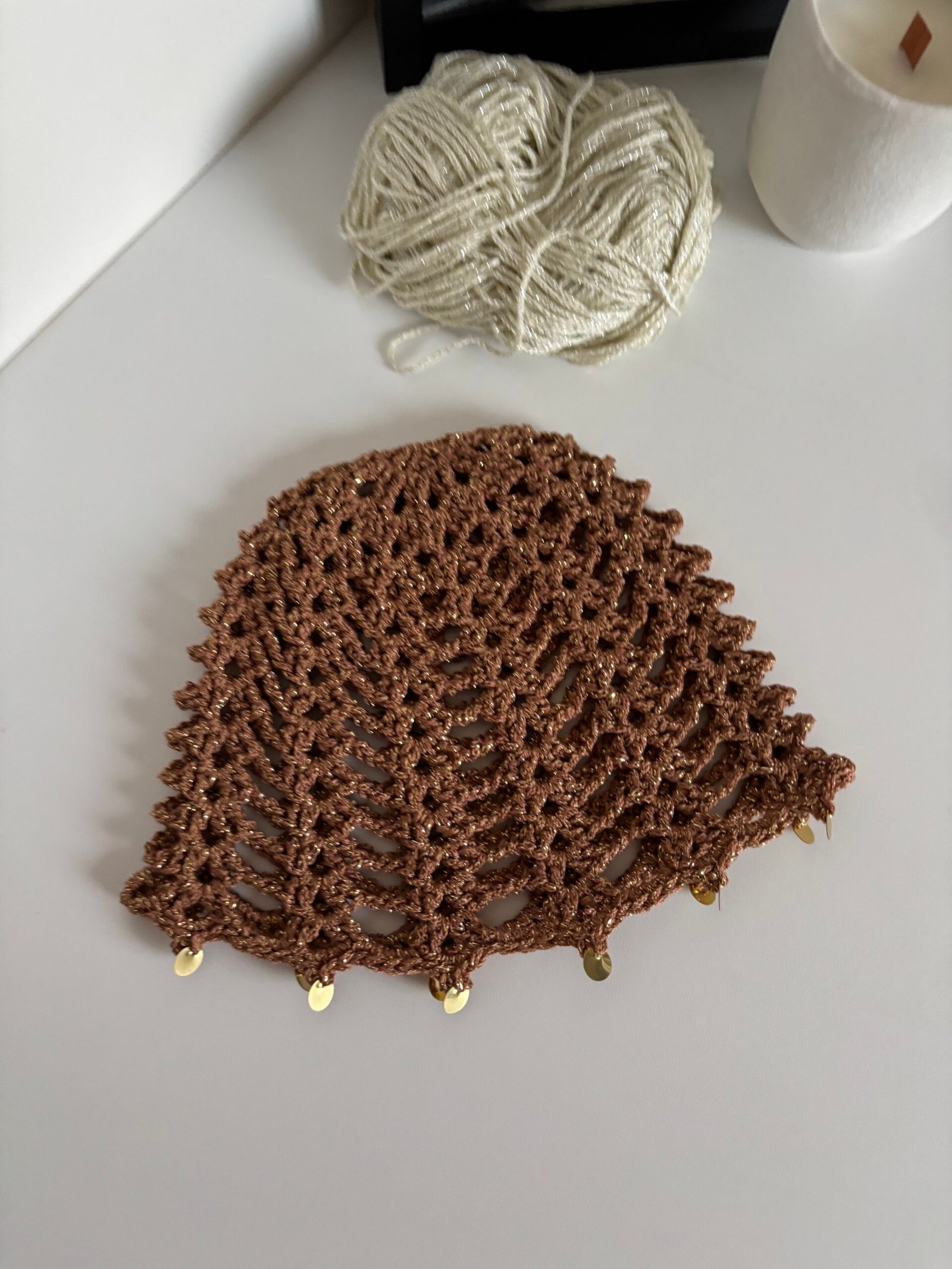 Bonnets au crochet brillant doré avec sequins ✨