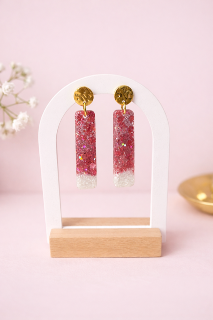 Boucle d’oreille en résine, réalisées à la main.