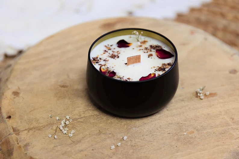 Cire de soja 100% naturelle & vegan – Mèches en bois – Fleurs séchées.