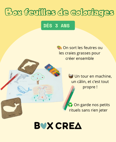 Idéale pour les enfants déjà fans de BoxCréa, cette box permet de colorier, laver et recommencer, prolongeant ainsi l’aventure créative sans gaspillage.