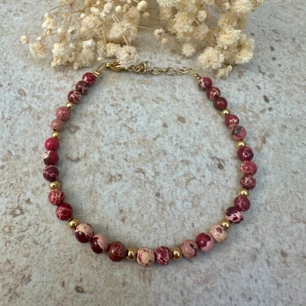 Bracelet doré en acier inoxydable avec ses perles vertes (Pierre impériale verte).
