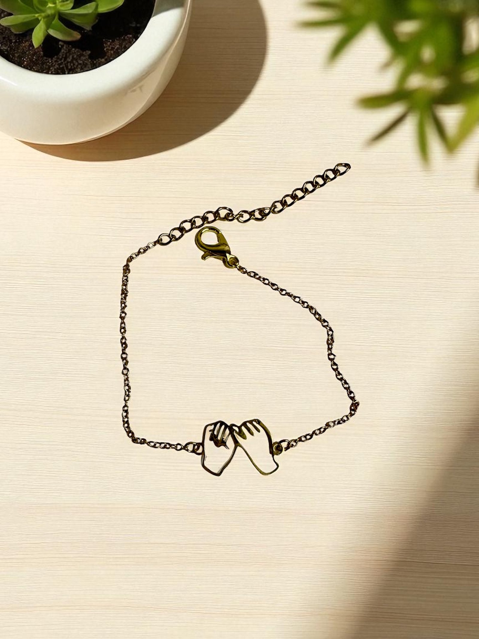 Célébrez un lien unique avec ce bracelet délicat représentant deux mains liées par le petit doigt. Un symbole fort d’amitié, d’amour ou de fidélité, idéal à s’offrir ou offrir en cadeau.