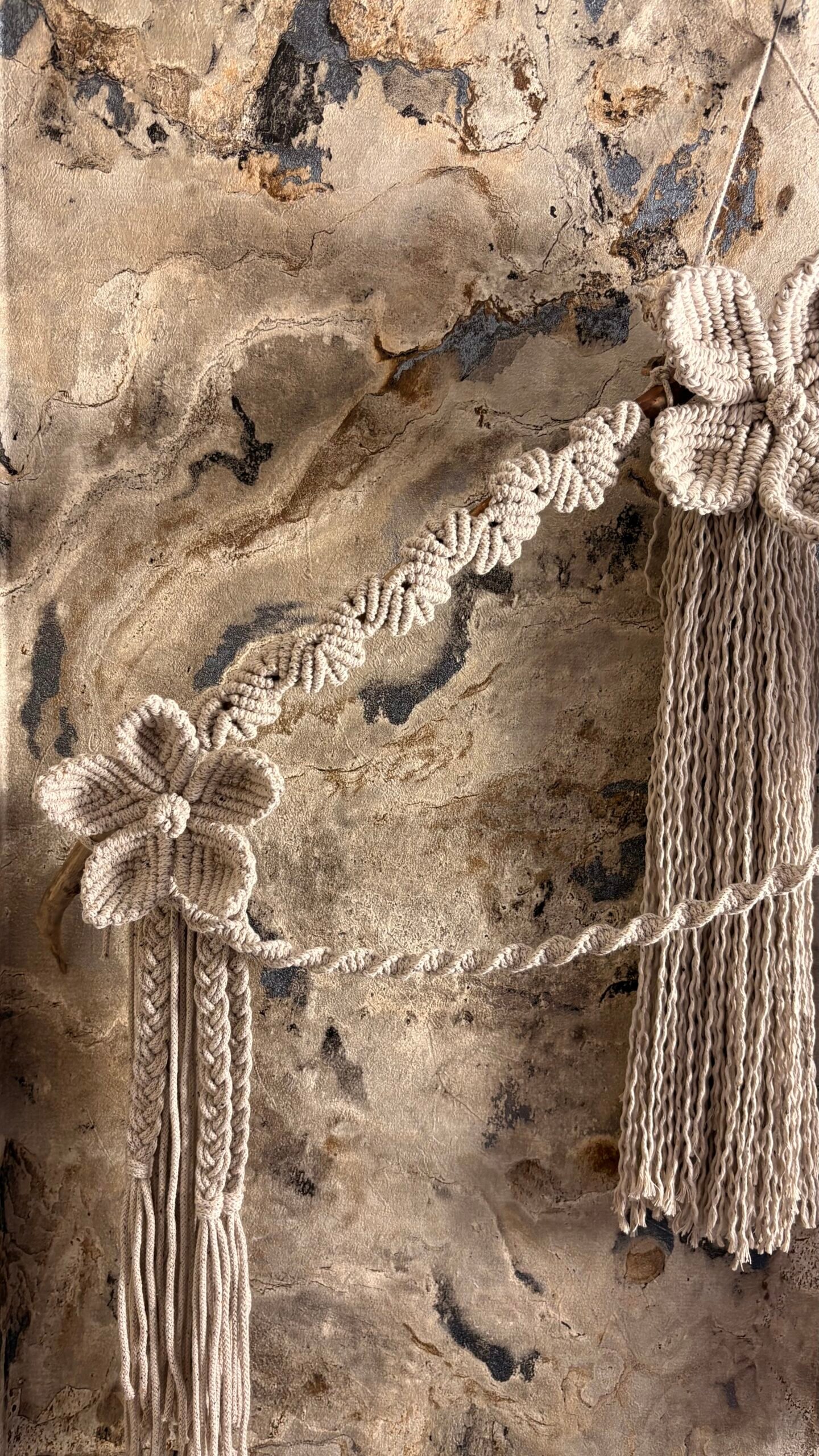 Branche florale en macramé entièrement réalisée à la main dans mon atelier en Moselle.