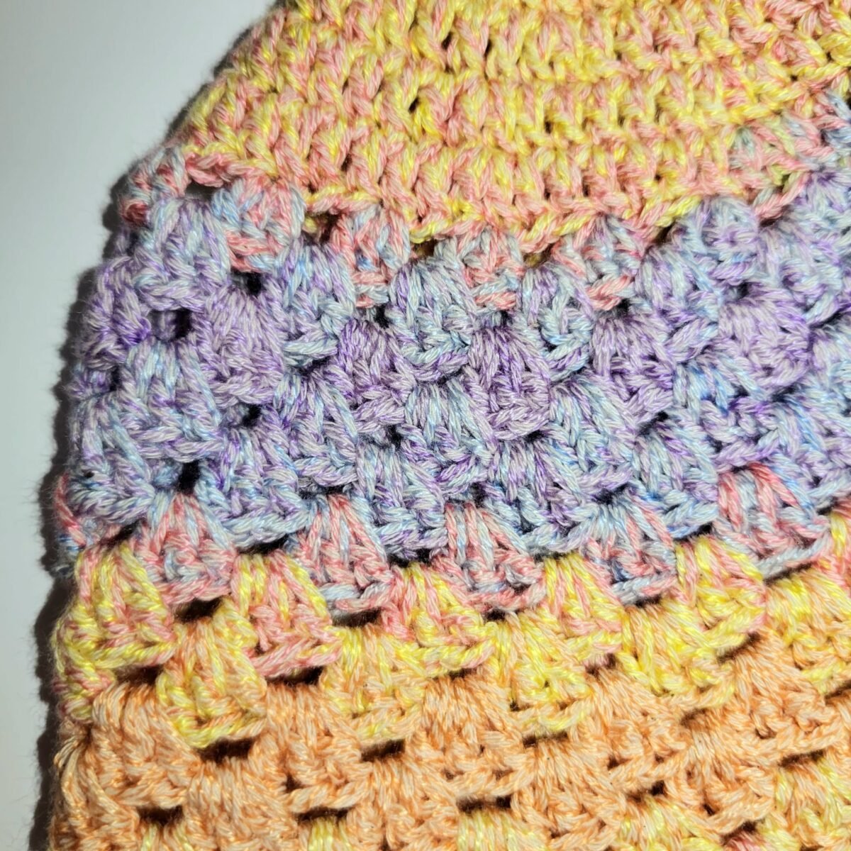 Ajoutez une touche de douceur et de couleur à vos journées avec ce bonnet crocheté à la main. Il est réalisé en coton de qualité, avec plusieurs fils de couleur mélangés. Léger, et confortable il est agréable à porter en toute saison.