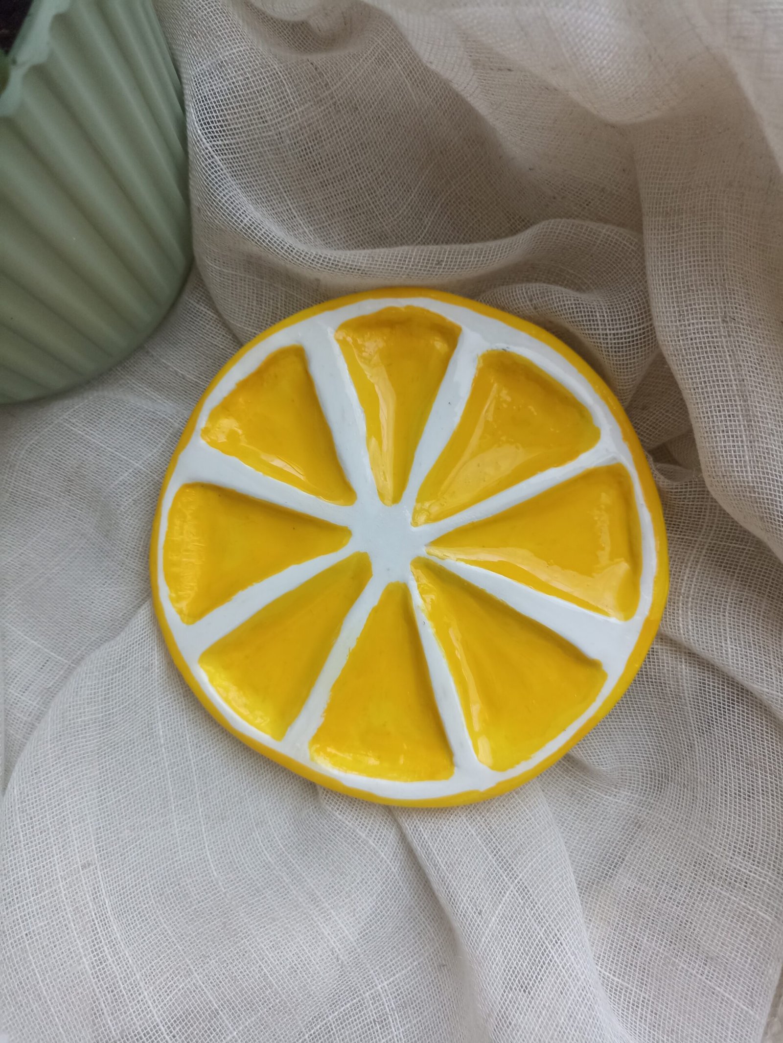 Coupelle « Citron » en argile, entièrement faite à la main. Peut servir de vide-poche ou de repose bijoux.