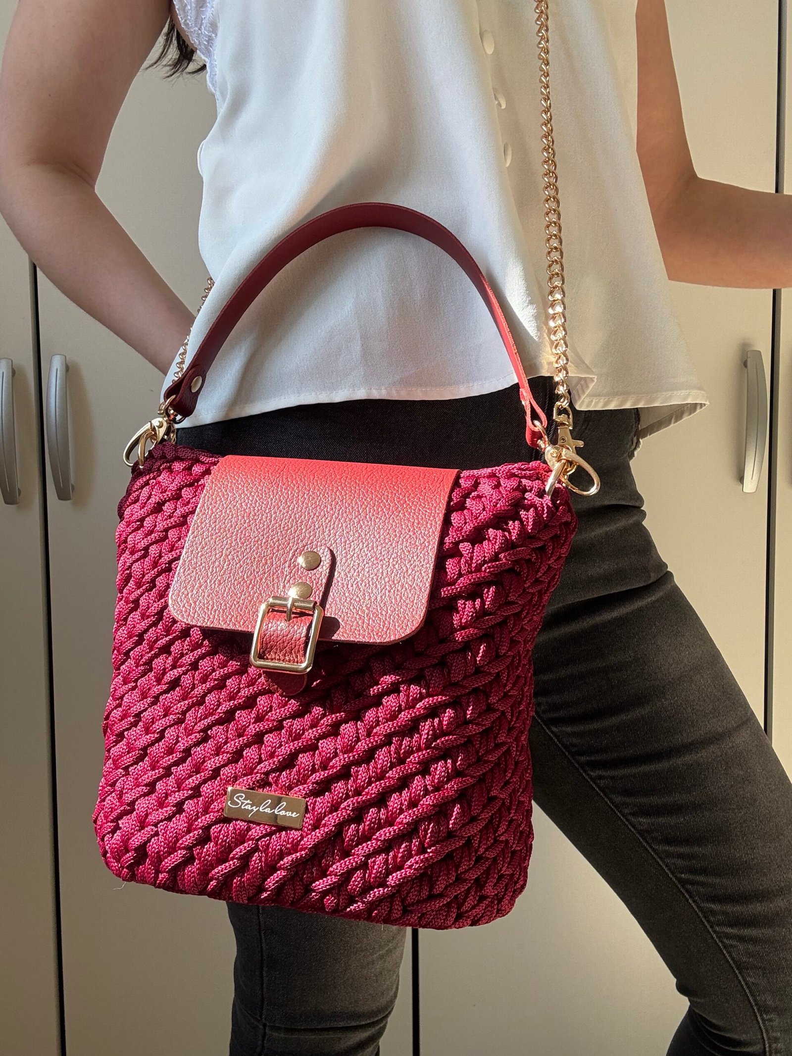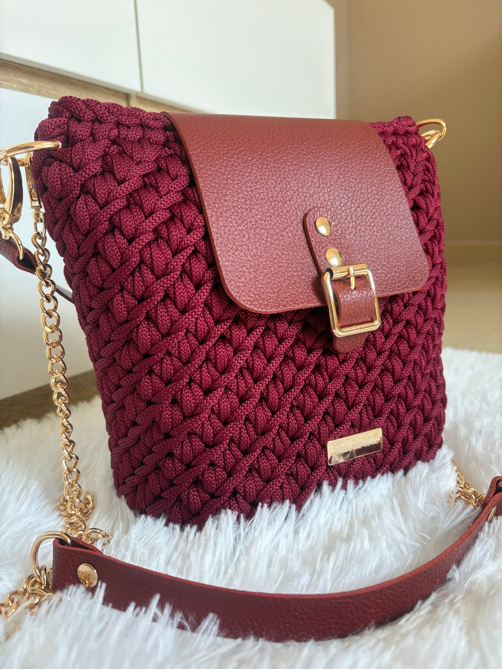 Laissez-vous séduire par ce sac bandoulière en crochet fait main, pensé pour celles qui aiment les accessoires uniques. Son rabat en cuir naturel s’accorde parfaitement avec son style bohème chic, pour une allure à la fois élégante et décontractée.