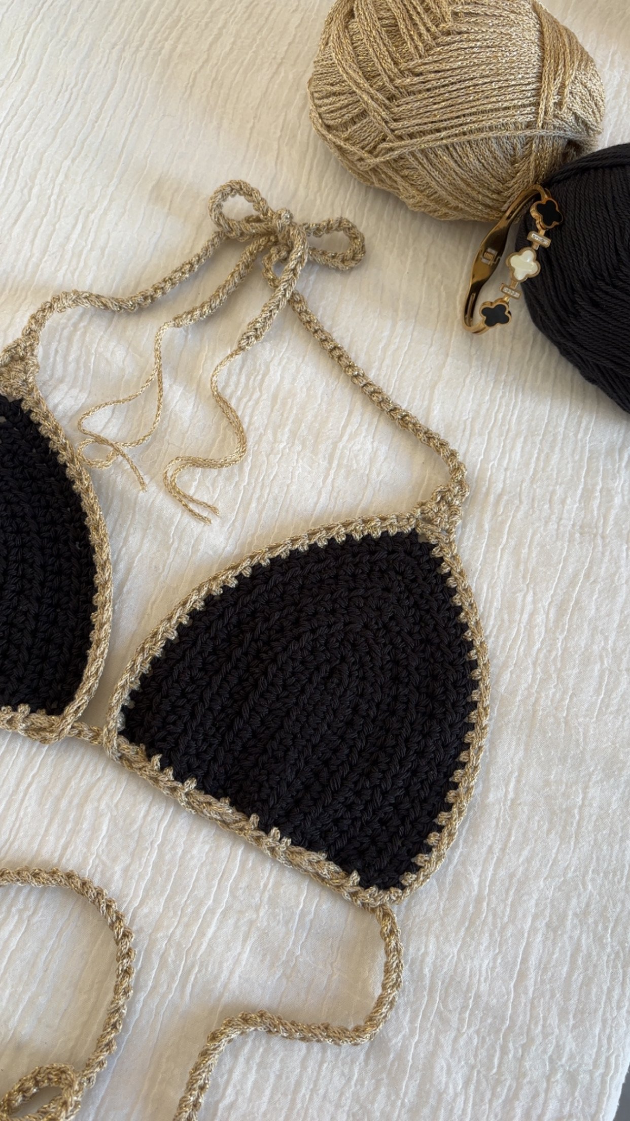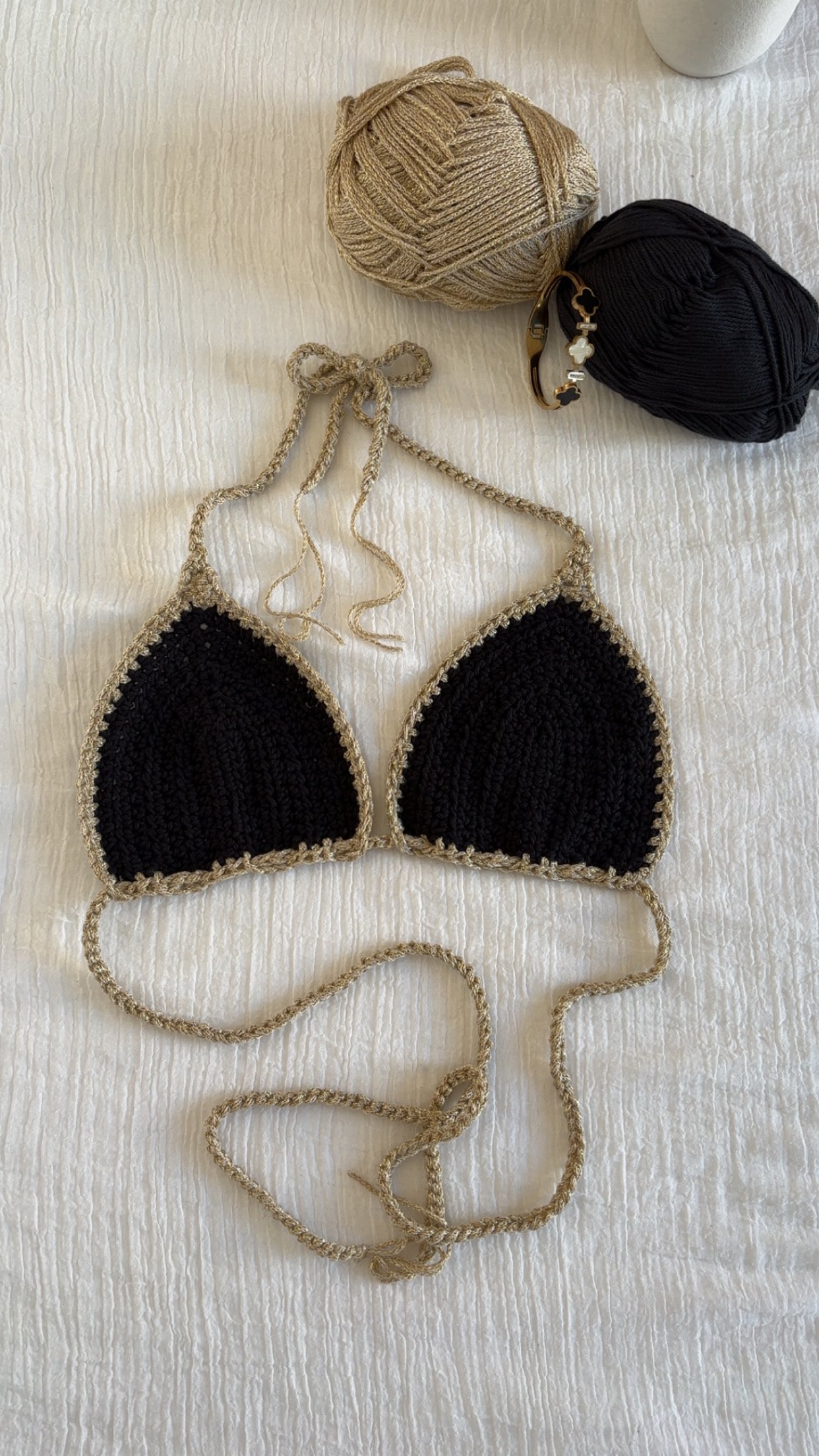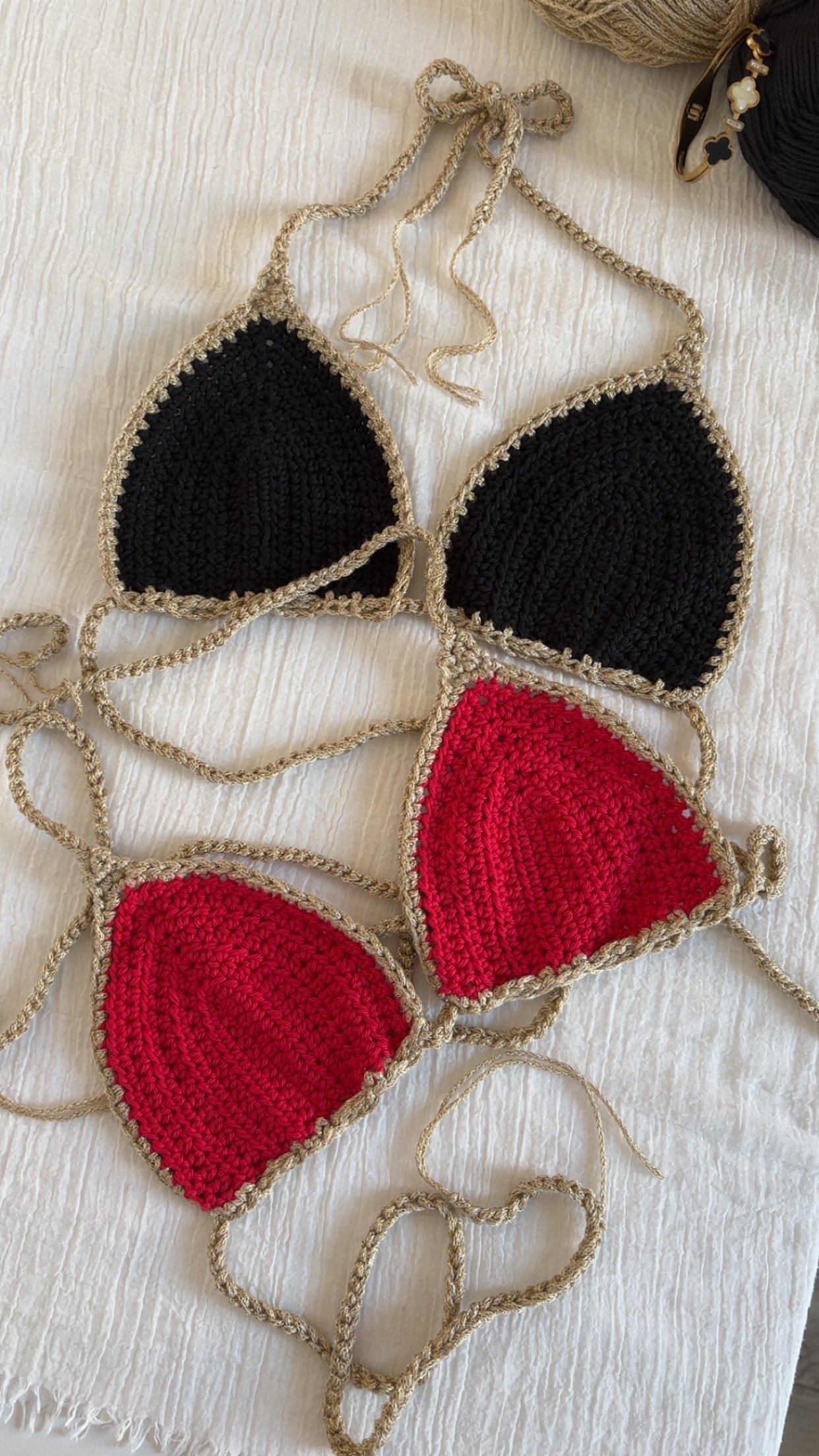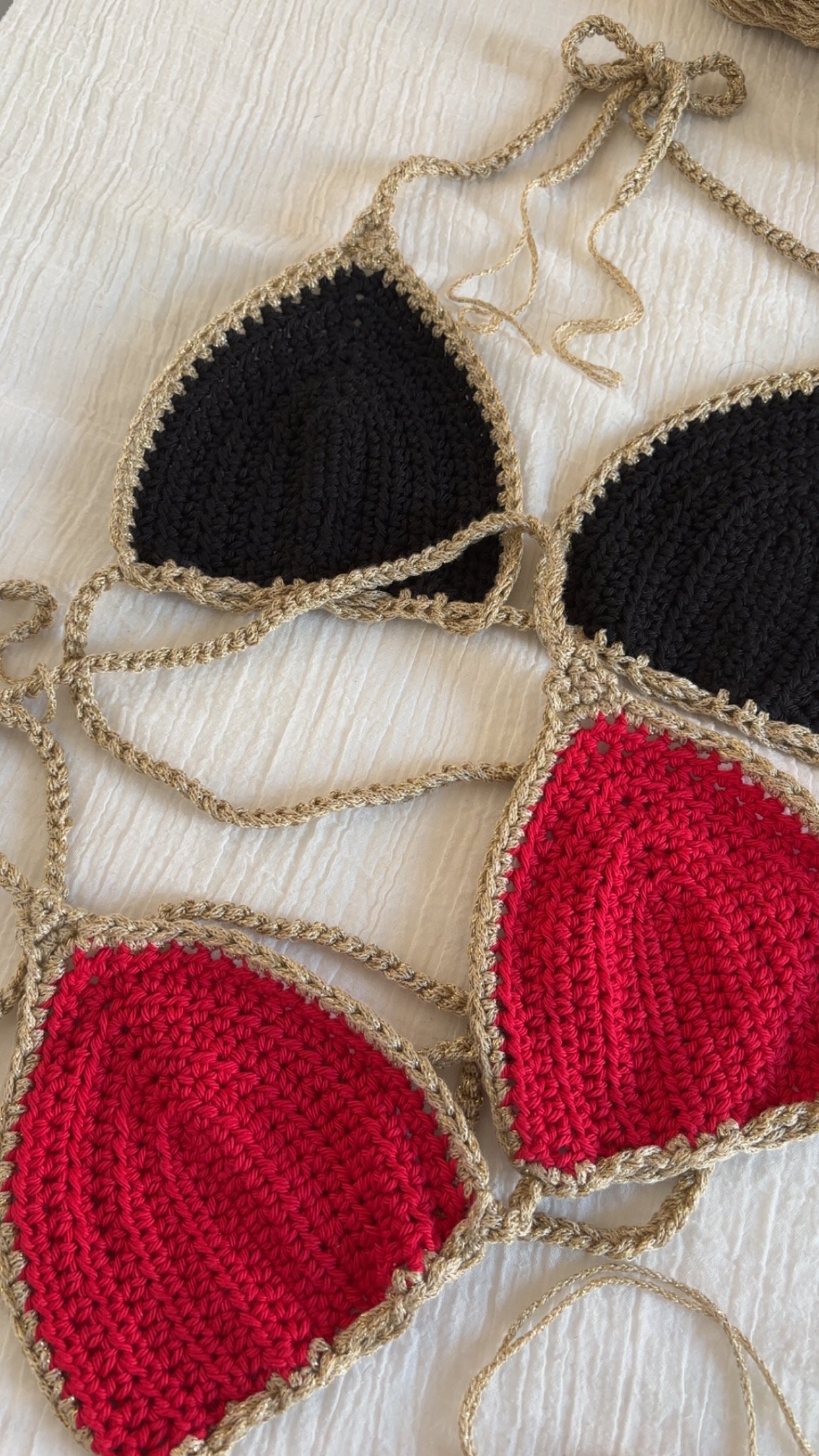 Soyez le premier à laisser votre avis sur “Haut de bikini en crochet 100% coton noir ou rouge”