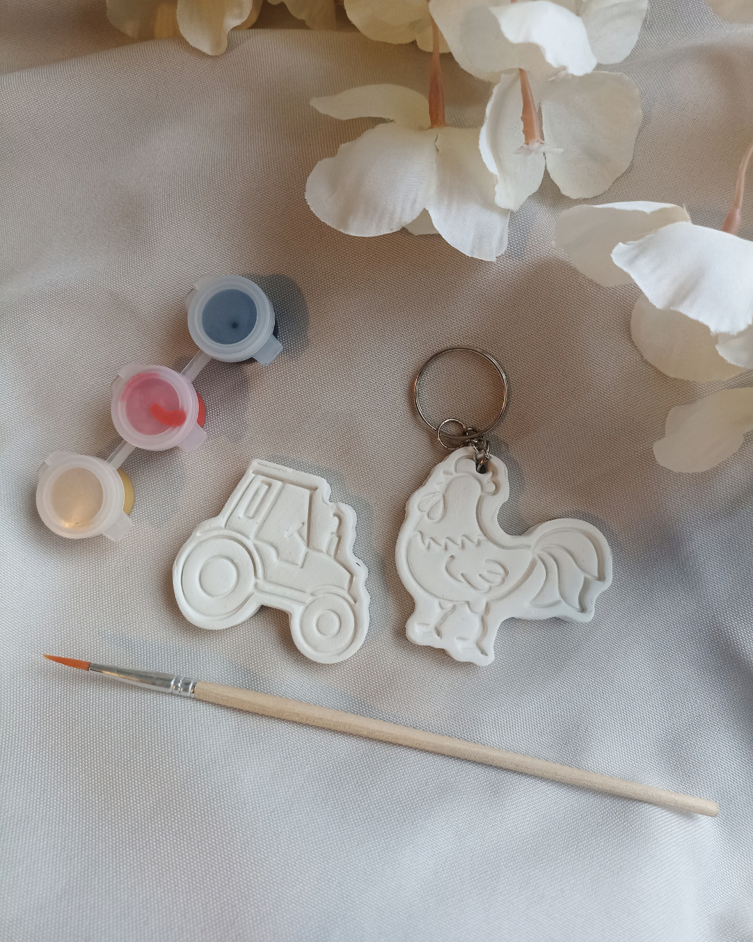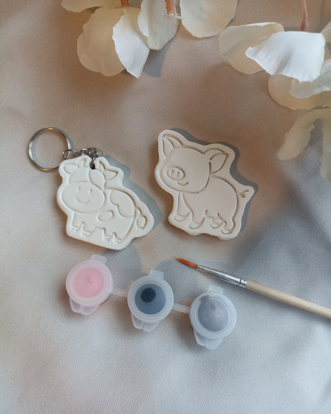 1 élément à peindre (porte clé, aimant ou broche)