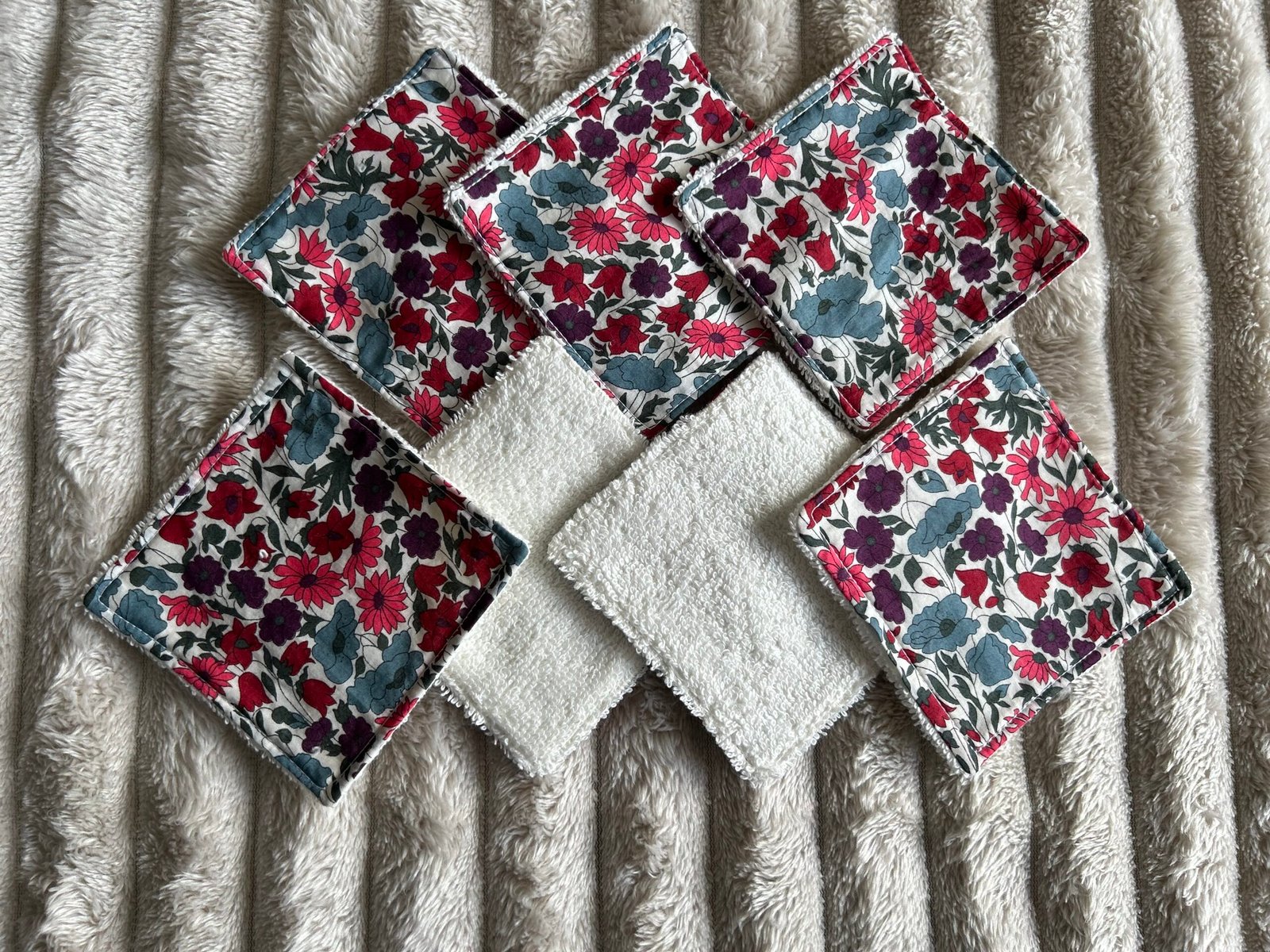 Lot de 7 cotons réutilisables – Liberty fleurs multicolores