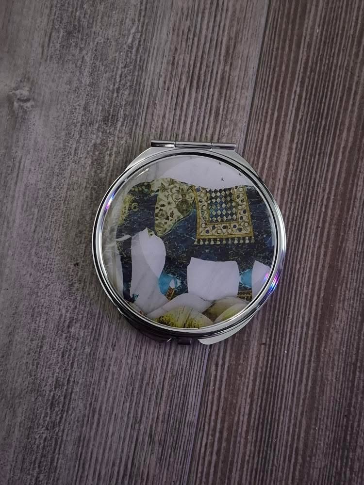 Miroir de poche de 7 cm de diamètre, idéal pour le glisser dans le sac, la pochette, le tote bag ou autre. Pour les petits budgets, ça en fait un joli cadeau pour de petites occasions!