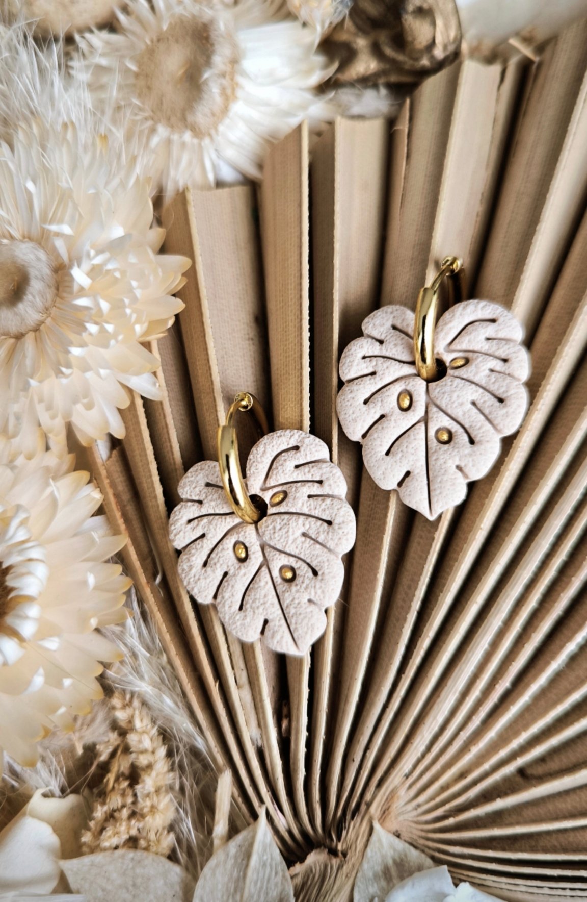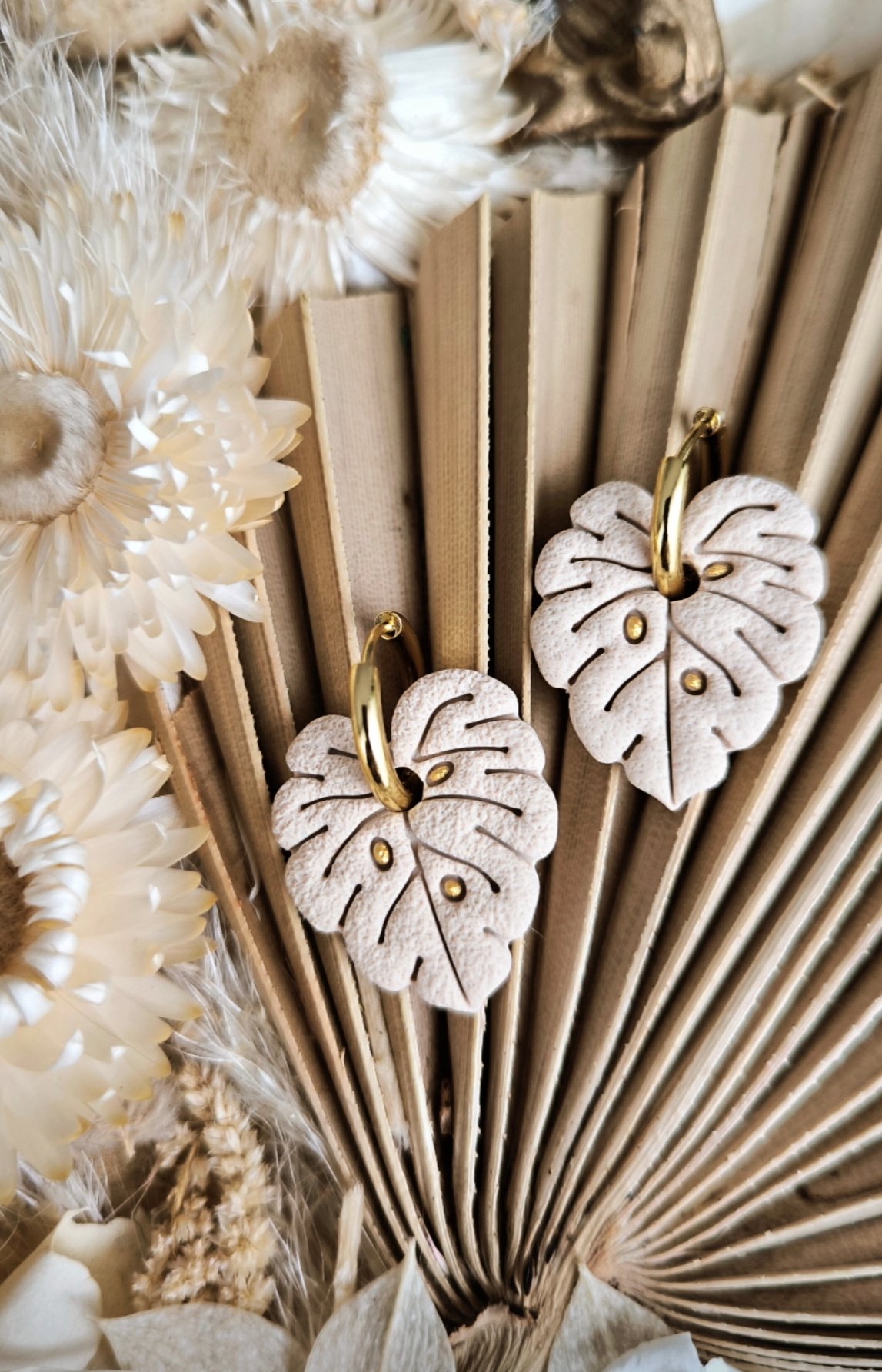 Magnifiques pampilles avec sa touche de doré chic, fait main en argile polymère pour boucles d’oreilles interchangeables