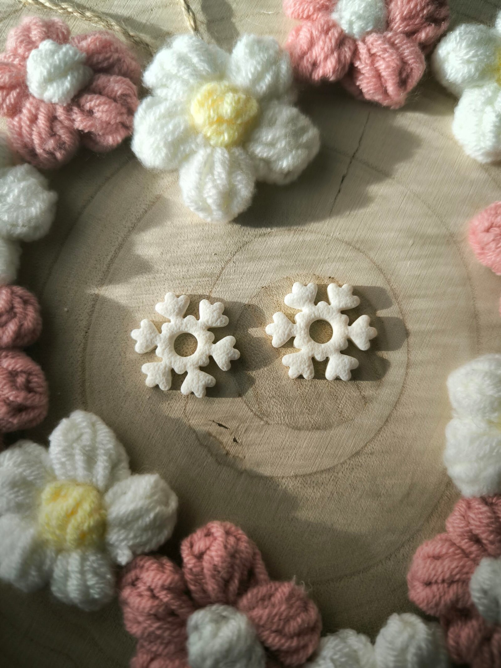 Magnifiques flocons effet poudré interchangeables pour boucles d’oreilles, fait main en argile polymère