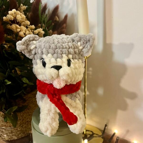 Petit renard avec son écharpe, crocheté à la main.