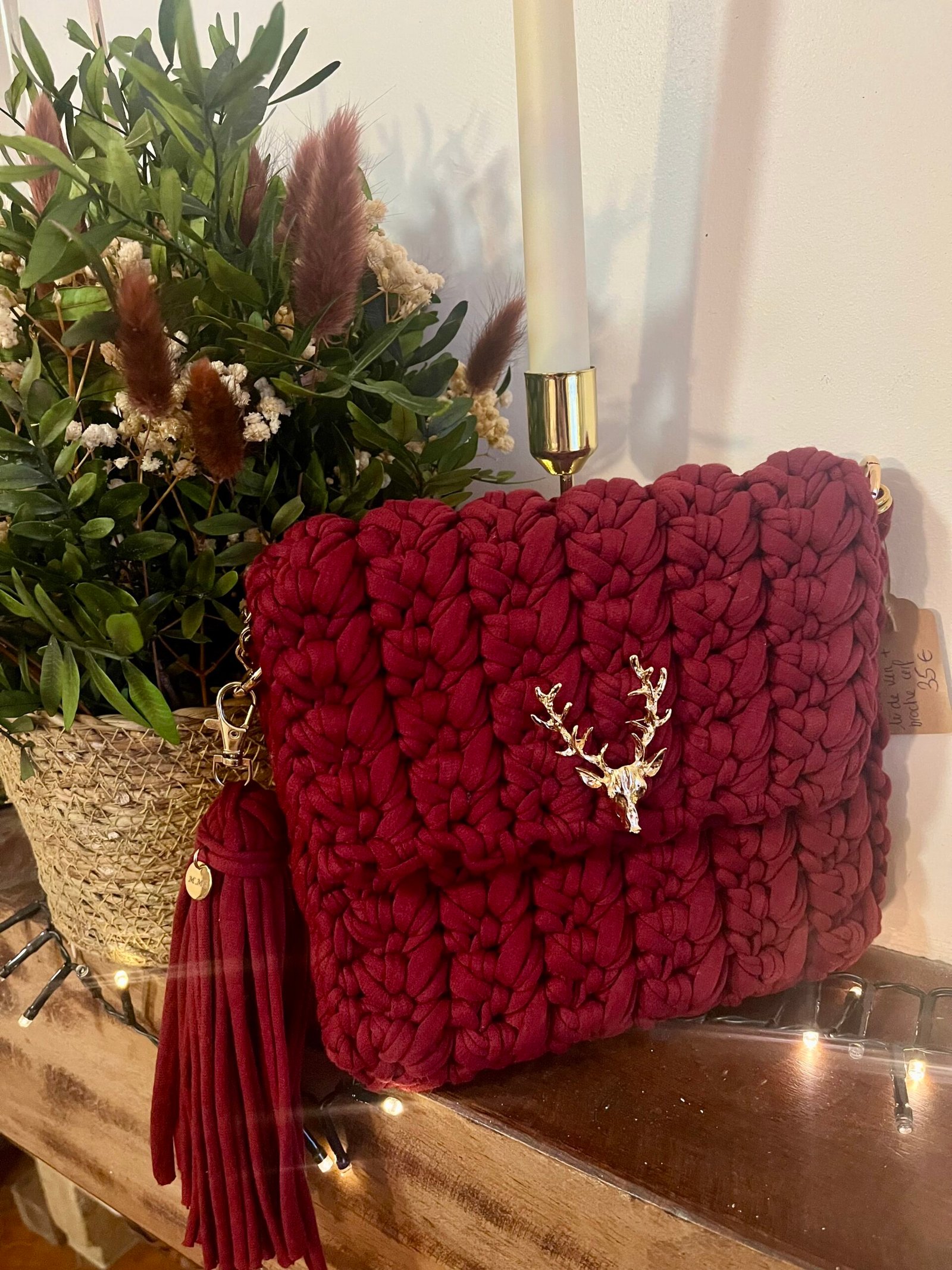 Sac à main fait au crochet avec du fil t-shirt (fil OEKO TEX, recyclé).