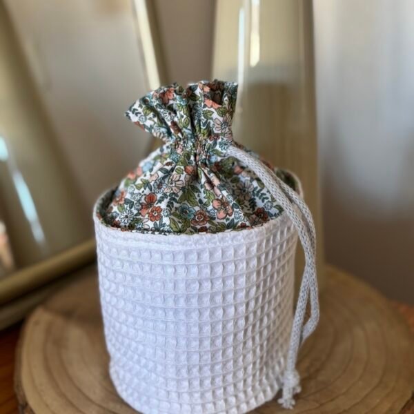 Ce pochon en tissu allie praticité et esthétique avec son format idéal de 20 cm de hauteur et 12 cm de diamètre. Parfait pour organiser vos essentiels du quotidien, il se ferme facilement grâce à son cordon de serrage, maintenant son contenu bien protégé;