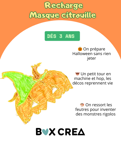 Ce masque de citrouille en tissu doux, brodé et réutilisable transforme chaque enfant en personnage coloré et unique. ✨