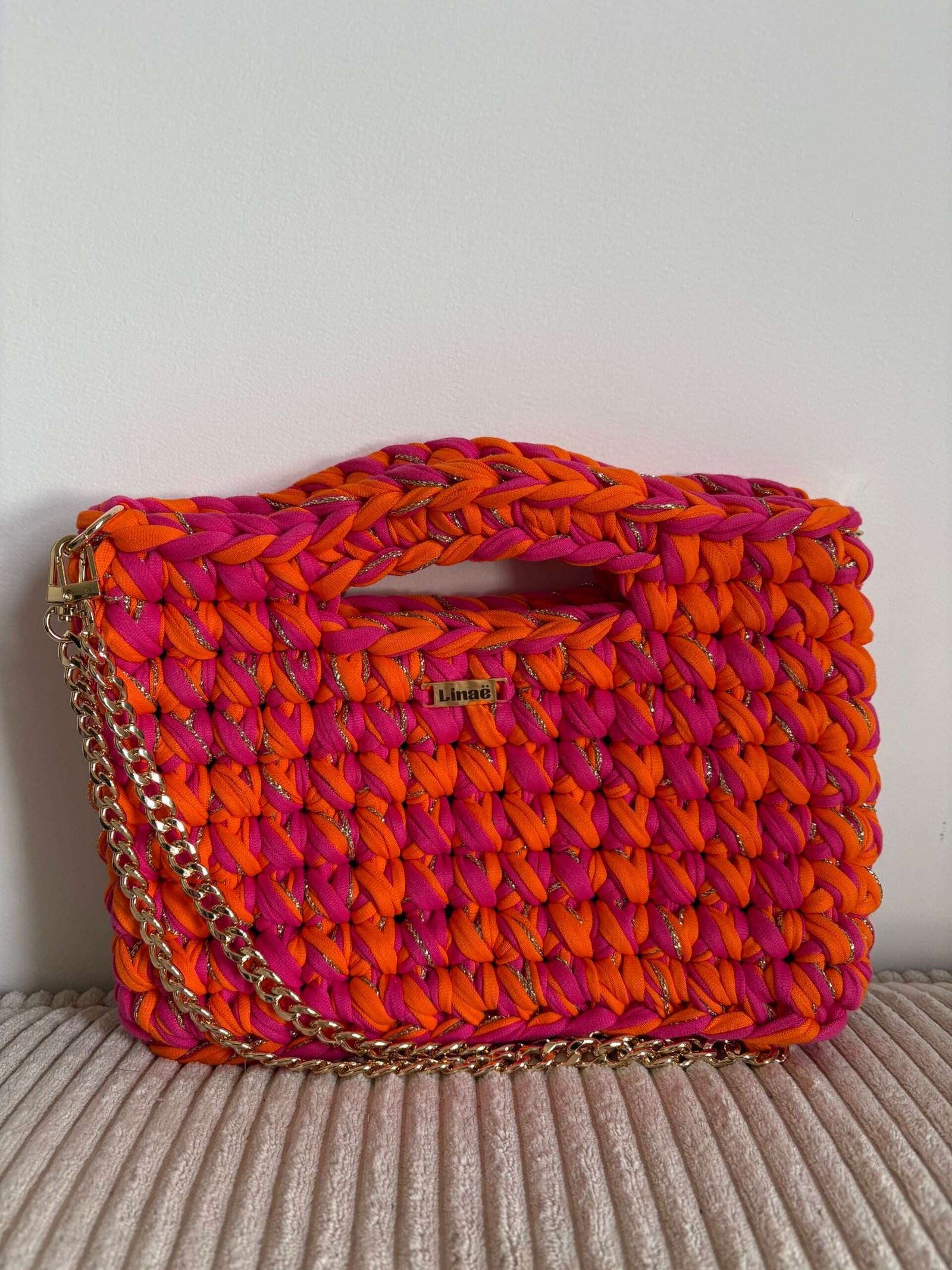 Pensé comme un indispensable du quotidien, le modèle Mona allie caractère et praticité. Entièrement fait main par mes soins au crochet, il apporte cette touche unique et affirmée à tous vos looks. Assez spacieux pour accueillir vos essentiels, il vous accompagne dans toutes les situations.