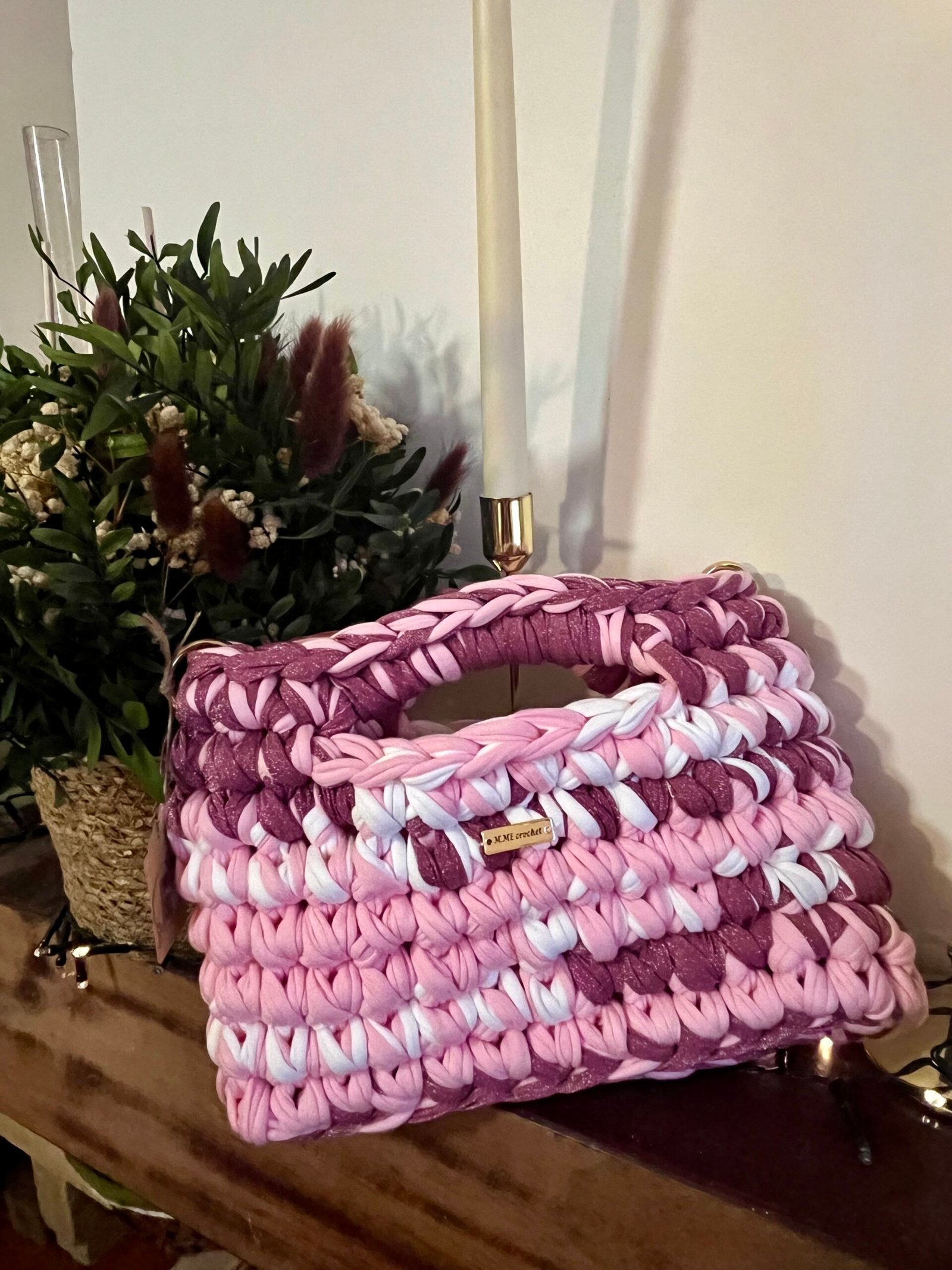Sac à main fait au crochet avec du fil t-shirt (fil OEKO TEX, recyclé).