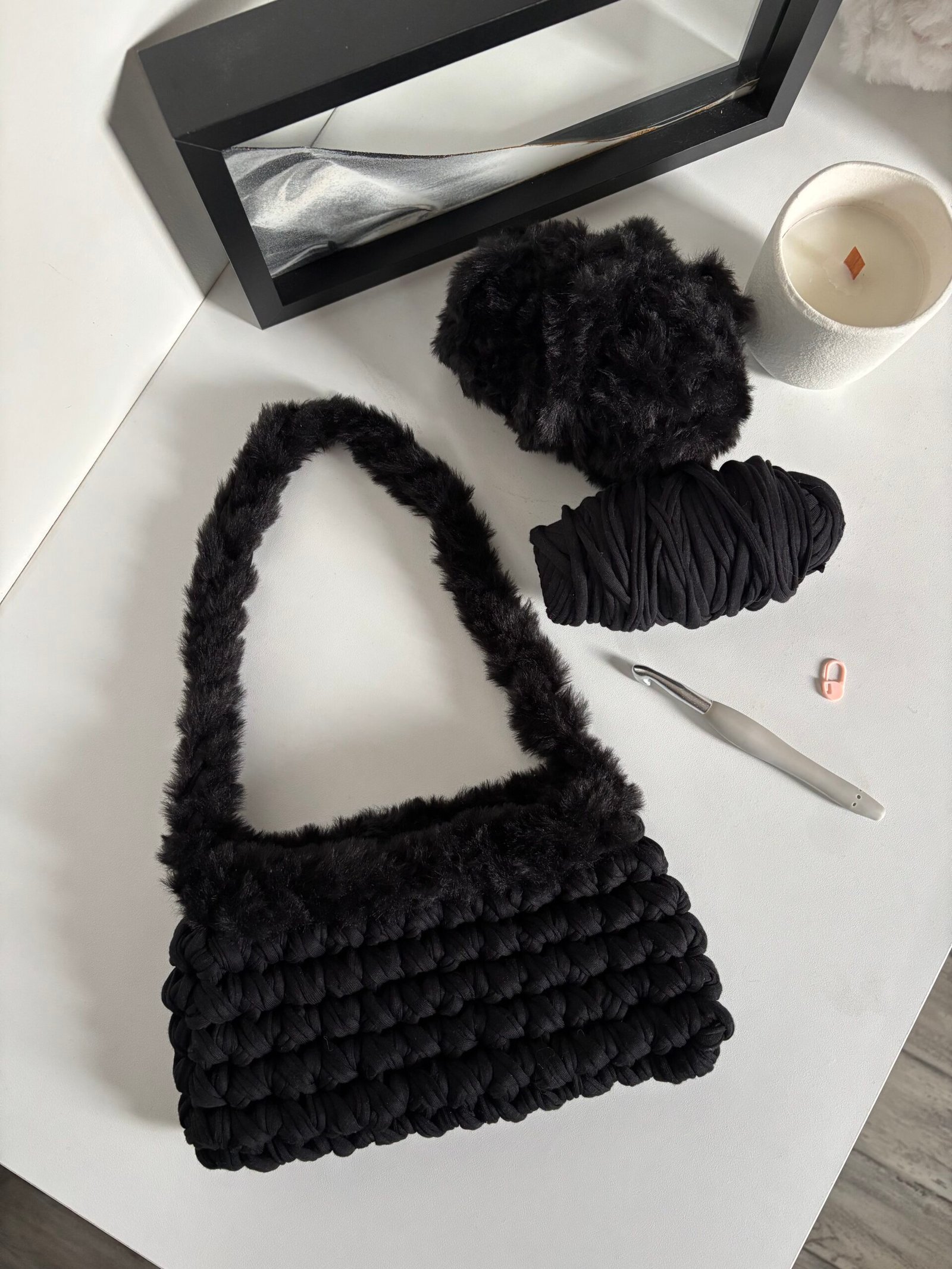 👜 Sac en crochet avec détails en fausse fourrure fait main ✨