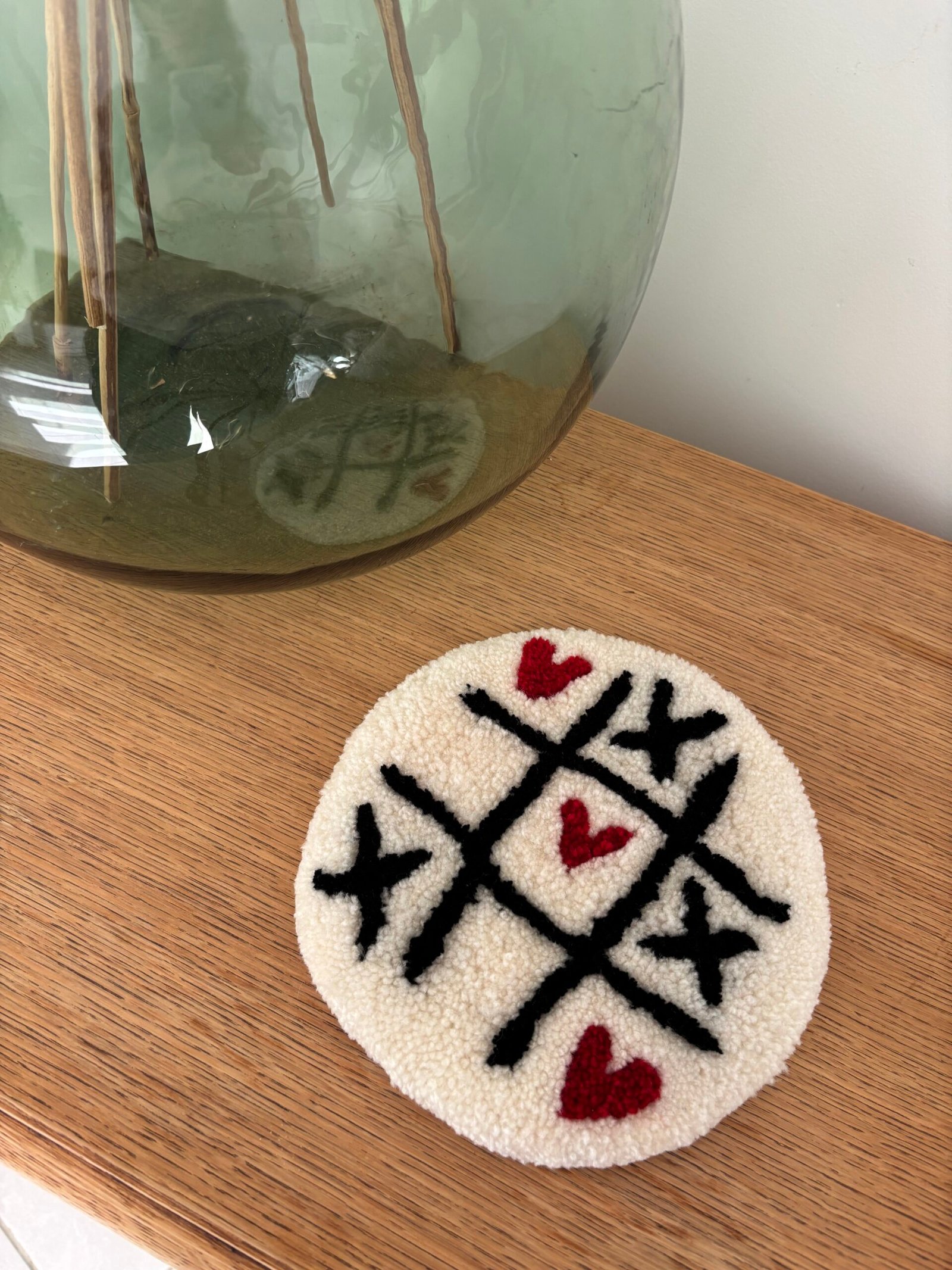 Tapis design morpion à utiliser comme vide poche ou dessous de verre !