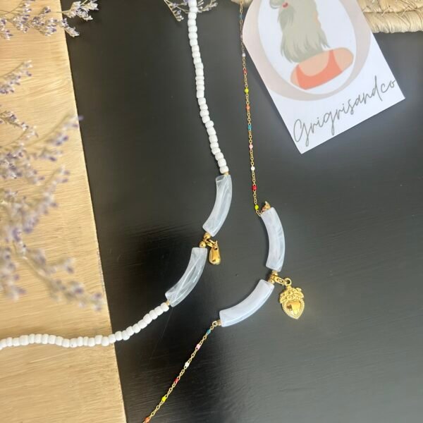 Je suis passionné par la création alors une copine m’a donné un défi … depuis j’aime beaucoup créer ces colliers car ils sont uniques … ce sont des colliers créé avec des « restes » de perles … ils sont imaginés ,dessinées & crées